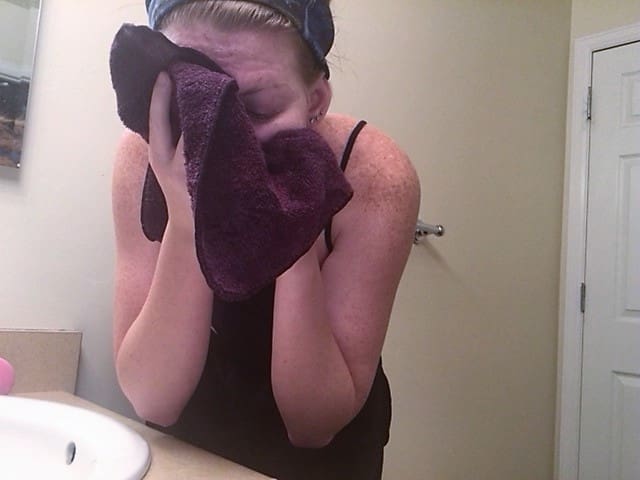 While it’s on, you’ll feel a little pulling and a slight tingling, especially if you used the apple cider vinegar. You will definitely be able to tell when it has completely dried on your skin.
